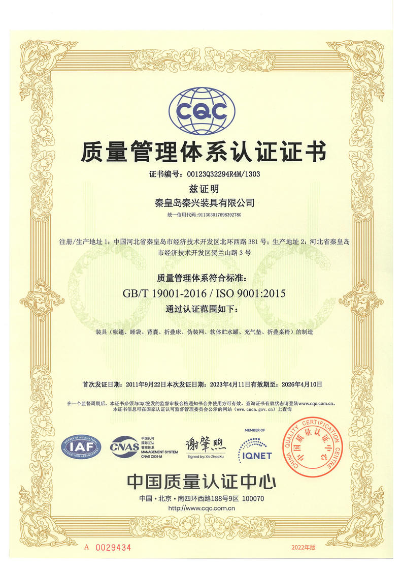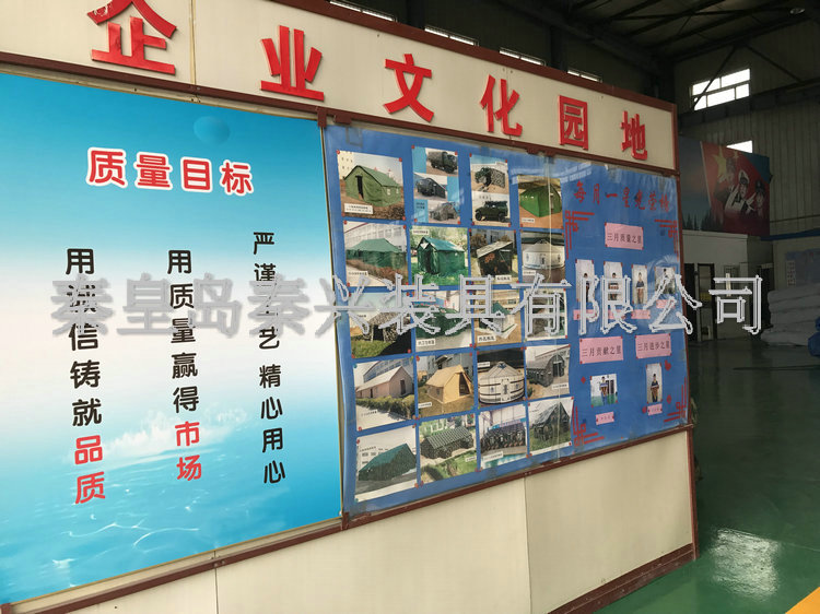 秦皇島秦興裝具有限公司有限公司源于我國(guó)第3524工廠,創(chuàng)建于2005年,占地面積30畝,是一家致力于研究,發(fā)展,制造和銷(xiāo)售為一體的綜合性裝具及紡織服裝加工生產(chǎn)企業(yè),我們的主要產(chǎn)品有單、棉帳篷,民用帳篷,旅游帳篷集各種機(jī)工產(chǎn)品等。